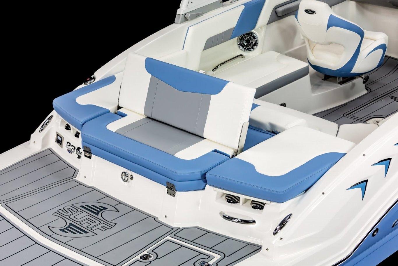 Endless wake, endless fun. The all-new 23 Surf combines everything you love about the SSi line with the excitement of the Surf series. Wakesurfing is more thrilling and easier to enjoy than ever, thanks to the Malibu Surf Gate™ that lets you instantly adjust your wake - no repositioning necessary! Powered by Volvo or Mercruiser forward drive technology, the 23 Surf features a Simrad touchscreen display that makes controlling your ride easy and straightforward. One thing is for sure: if you're not already a wakesurfing enthusiast, the 23 Surf is sure to turn you into one.