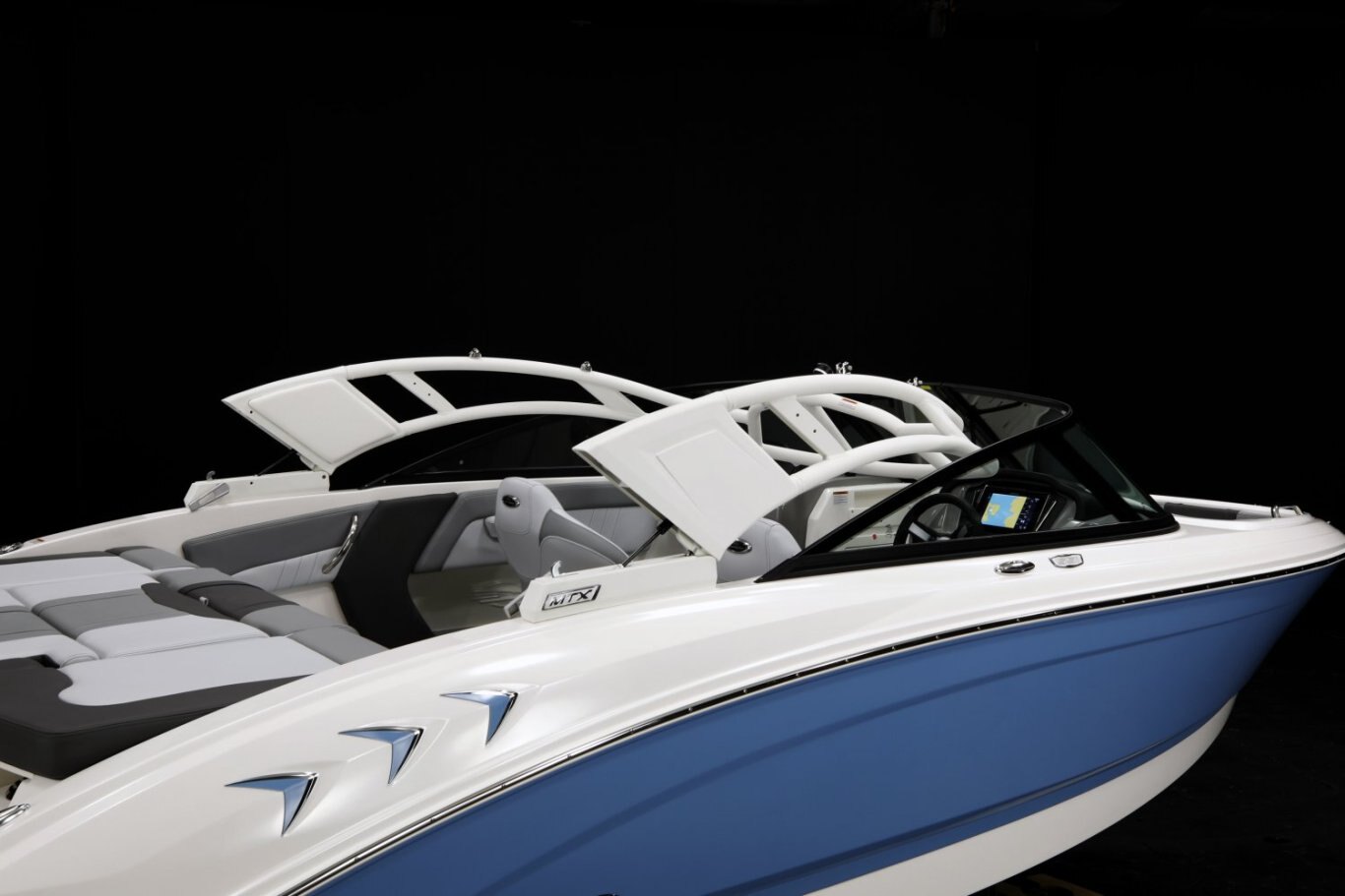 NO COMPROMISE.Set against an all-new helm design featuring a custom hand-stitched brow, the touchscreen Simrad GO7 will give you all the information you need for a safe day of boating. This all-in-one package will provide engine information, a depthfinder, a chartplotter, and stereo controls. |