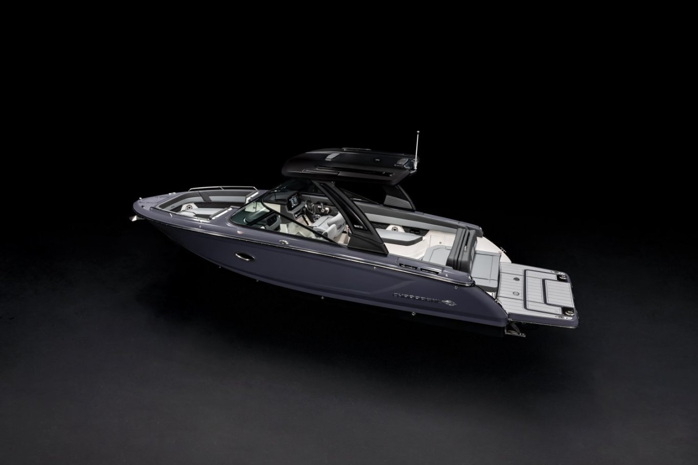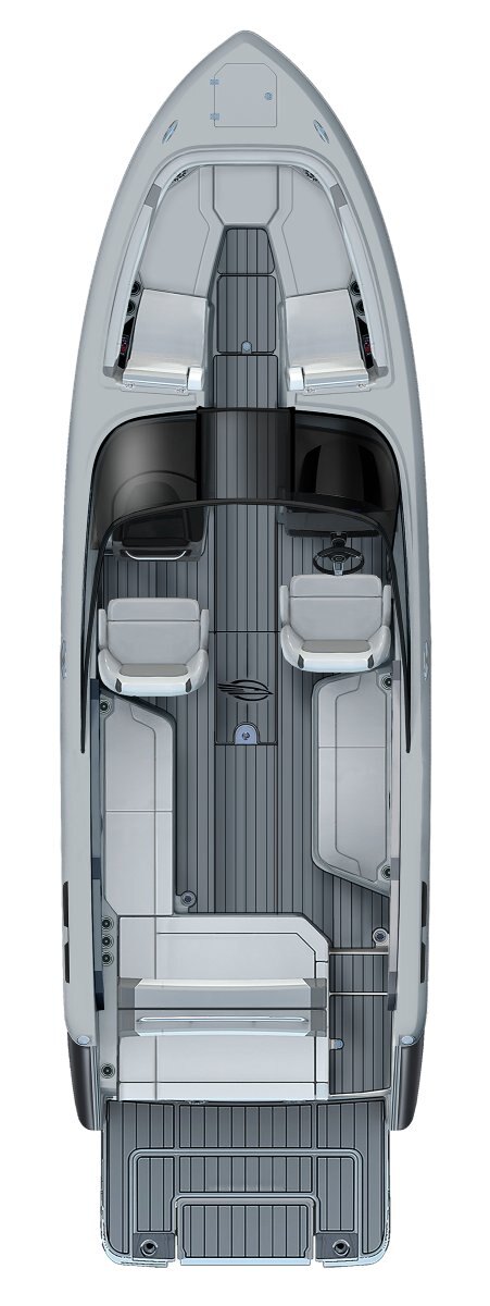 The SSX 30 stands out as a leader in design, performance, and functionality. As the largest model in the SSX stern-drive line, it combines power with agility and responsiveness. The helm is equipped with the latest touchscreen technology, while the cockpit is open and spacious, featuring a multi-position sun lounger. With a 9-foot beam, the cockpit offers ample space extending all the way to the bow area, which includes hinged storage beneath luxuriously appointed upholstery. Additionally, the standard Infinity Power Step swim platform makes enjoying water activities effortless.