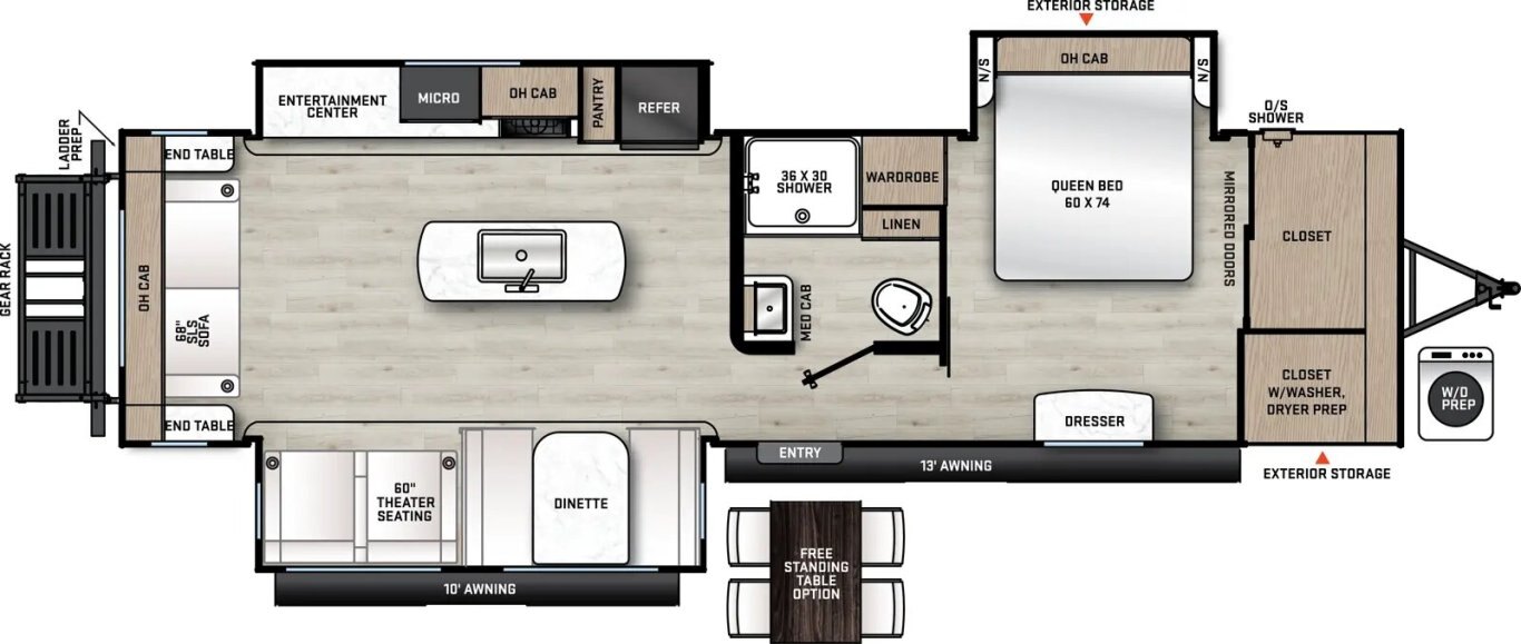 • Underbed Storage w/Separation from Outside Front Storage