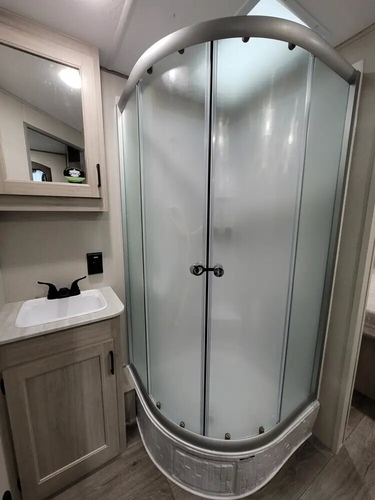 • Glass Step-In Shower w/ABS Surround (Per Floorplan)