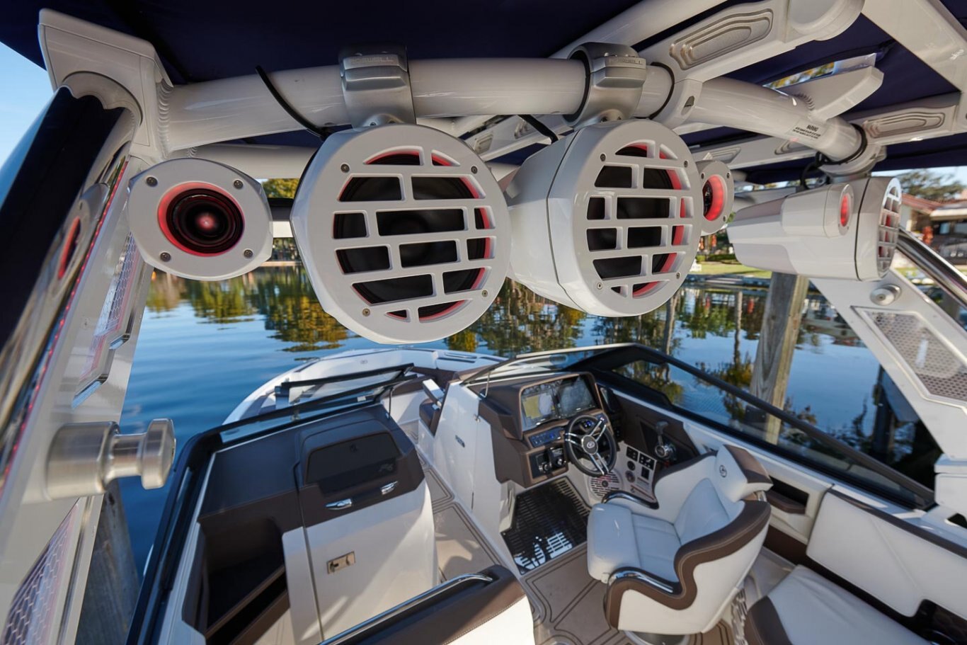 Surf Control SystemSelect a rider profile and the system will automatically configure the boat per the pre-saved setting—ballast, drive trim, speed, surf left or surf right—all from the cockpit touchscreen. |