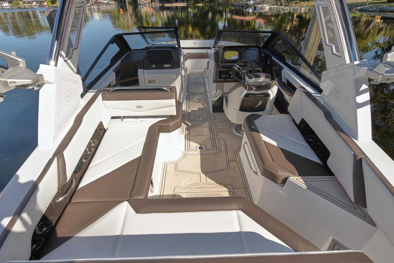 Surf GraphicsEnjoy hull-side color patterns special to Surf models, with upper-hull color areas that create unique looks with space for additional colors in the scheme—plus chrome Surf badging accents. |