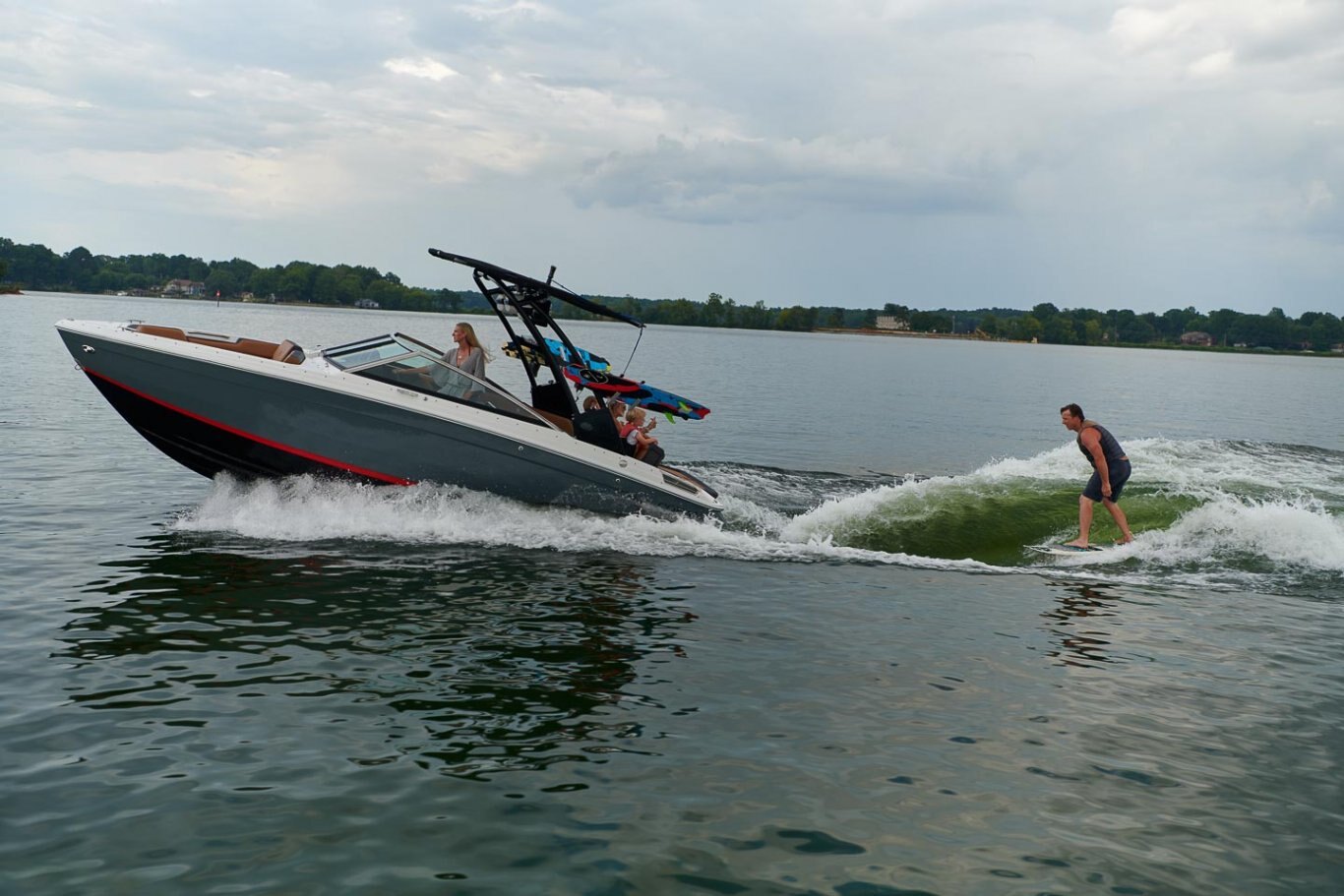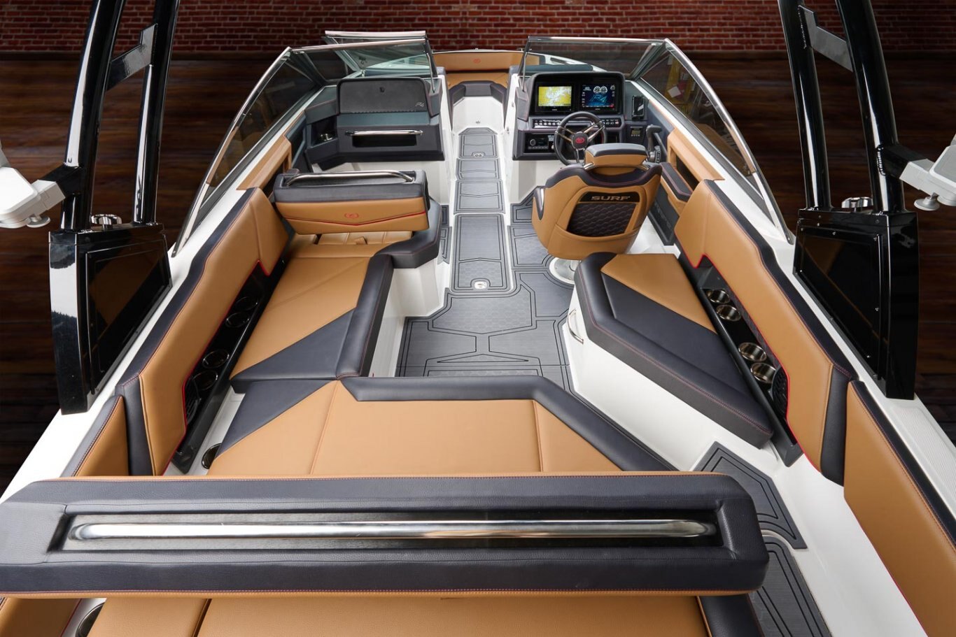 | Inside the R4 Surf, discover where state-of-the-art becomes fine art. A family sized sport runabout that incorporates sleek lines, crisp handling from the dual Garmin Glass Cockpit touchscreens, and a range of options, the uniquely refined interior complements its unsurpassed watersports capability. |