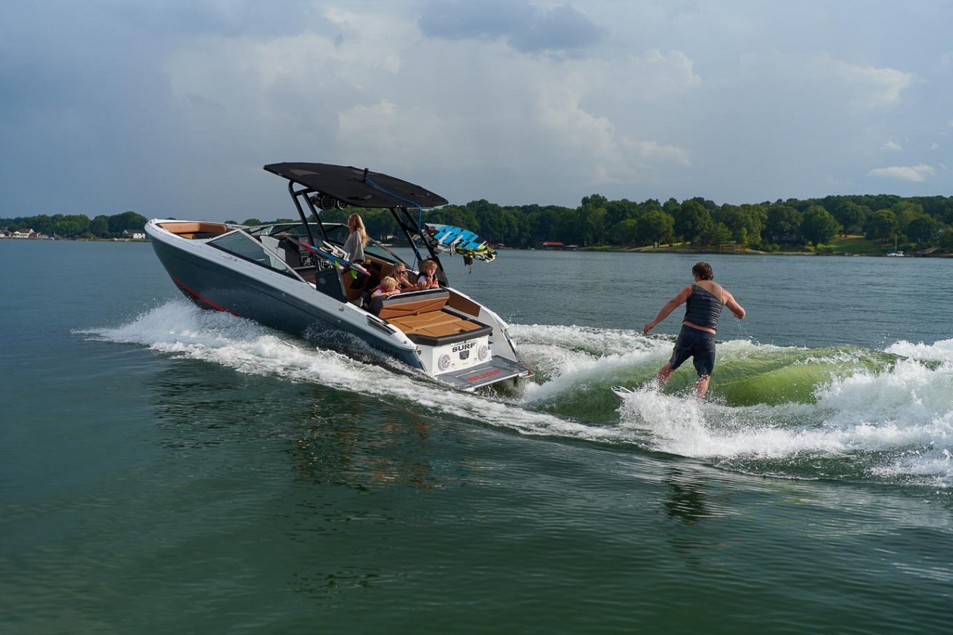 Surf Control SystemSelect a rider profile and the system will automatically configure the boat per the pre-saved setting—ballast, drive trim, speed, surf left or surf right—all from the cockpit touchscreen. |