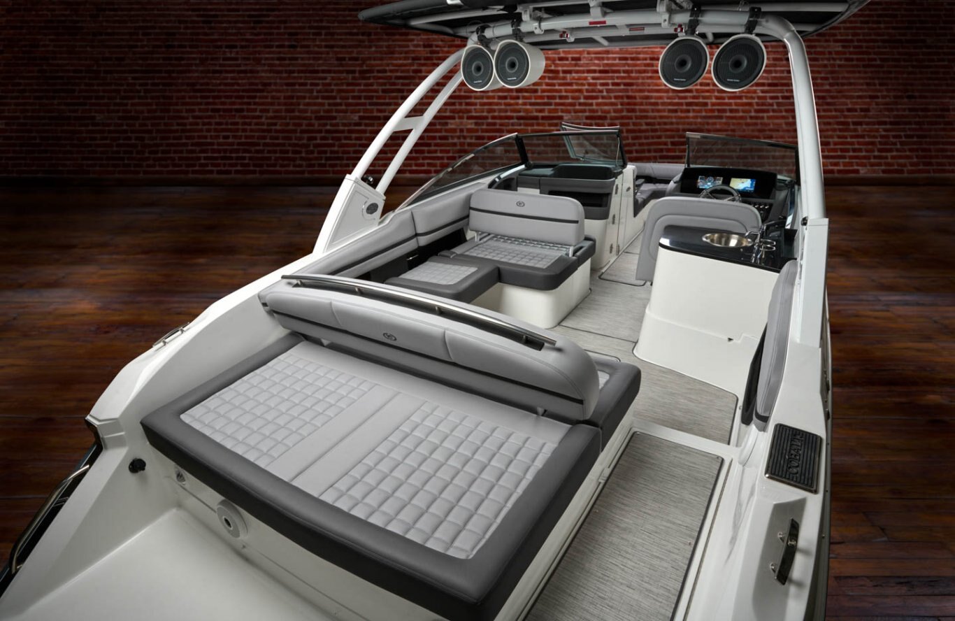 | The 30SC comes with standard twin engines, plus a spacious interior with quality amenities, ultimate comfort, and a 9’ 10” beam that offers a large entertaining space with a luxurious yacht feel to make your days and nights on the water feel special. |