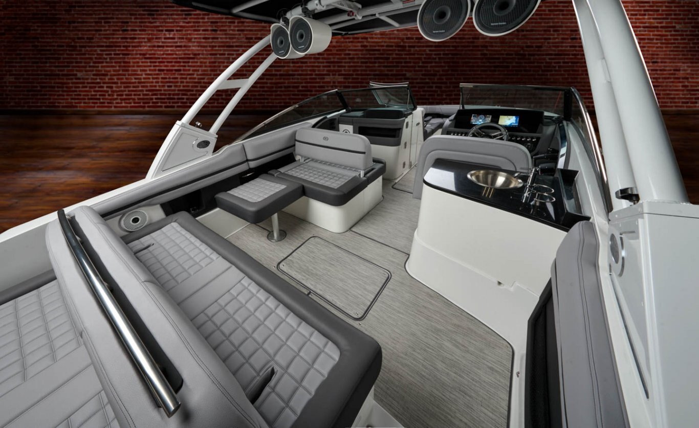 LED lightingCreate a rich nighttime ambiance in the cockpit and bow areas with indirect lighting hidden in interior upholstery side panels that feature RGB selectable color and LED low-power consumption. |