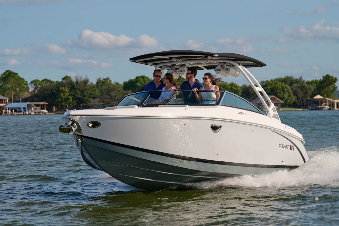 The Cobalt Glass Cockpit System is the premier multi-display solution for total helm control. The Garmin interface is fully integrated with the most pivotal handling and safety information from your Cobalt powertrain. The result is the ultimate boating experience now available with larger screens on select Cobalt models. |