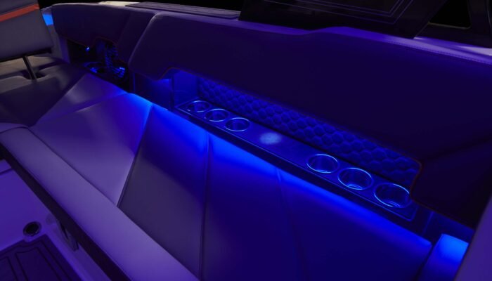 Cobalt’s already easy-to-use Swim Step just got easier. With the push of a button, the step folds into the water or returns from the water into the stowed position—all from the convenience of the aft sun pad. Designed to be sleek, simple, and effortless, the e-Step deployment has a near-silent actuation, making it the quietest actuated step on the market. |