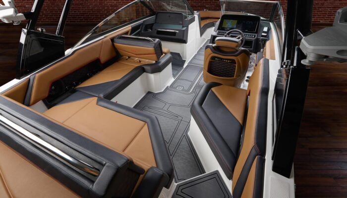 INTERIOR STYLING Find additional accent vinyl colors and stitching coordinated with the exterior hull. Plus, honeycomb stitching in the side-panel vinyl and honeycomb-embossed Sof-Trac floor mats. |