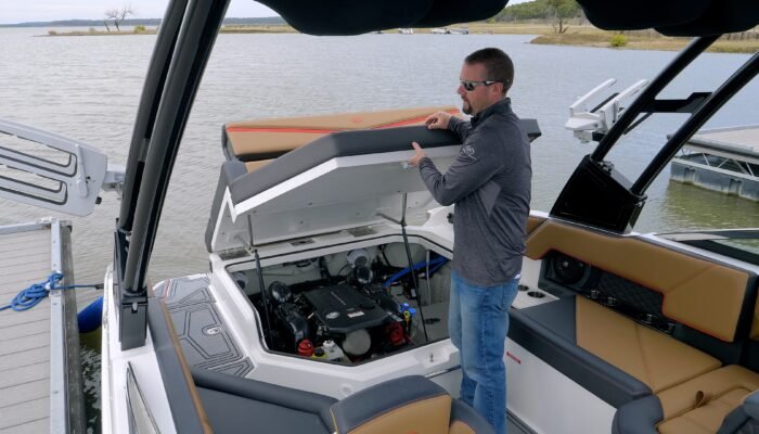 ENGINE ACCESS The wide engine hatch opening allows for easy access, easy maintenance, and storage space access—and the easy-lift hatch is gasket sealed when closed to reduce noise in the cockpit. |
