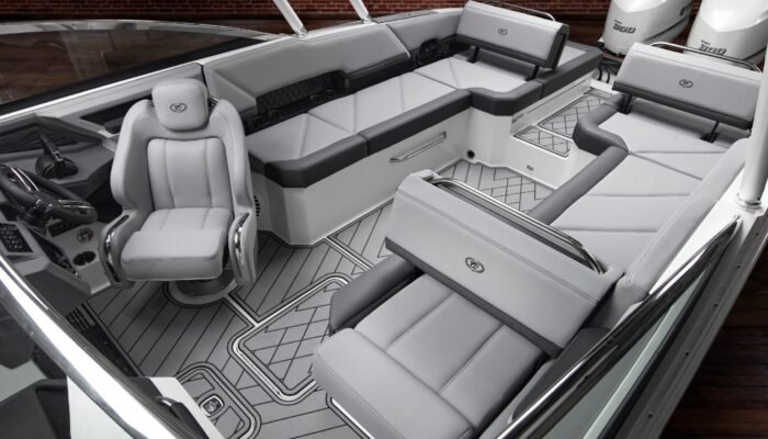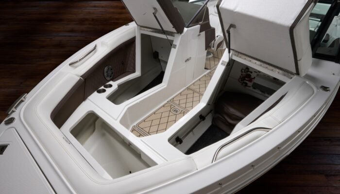 The R8 Outboard drives the outboard experience forward with a uniquely refined, expansive interior that features both a larger bow and cockpit fore to aft, providing extra comfort for your passengers and plenty of room for their belongings for a full and easy day of boating.