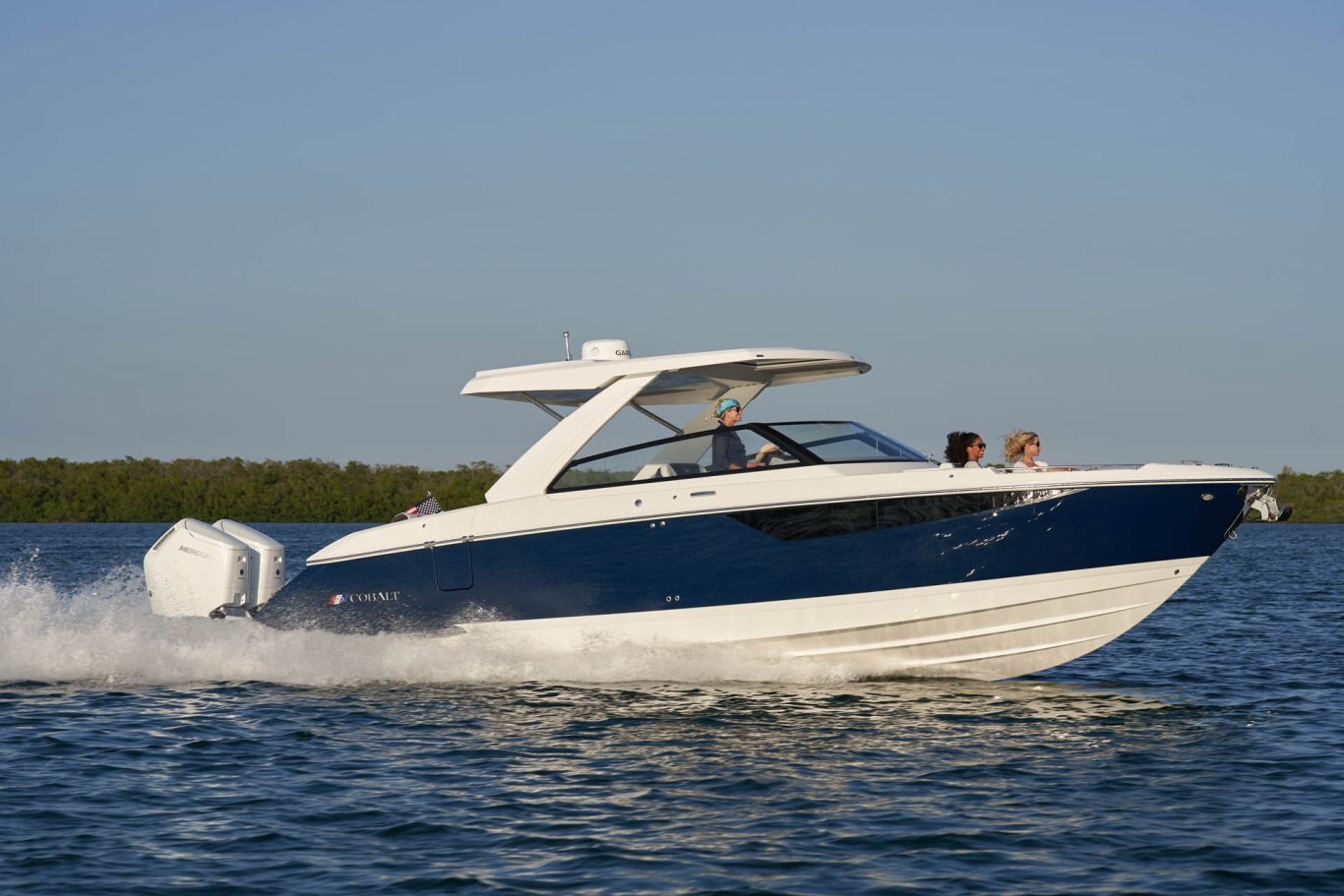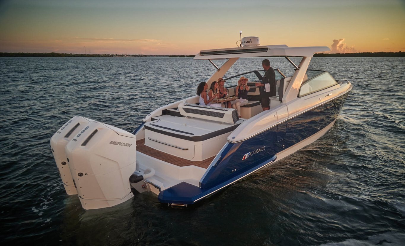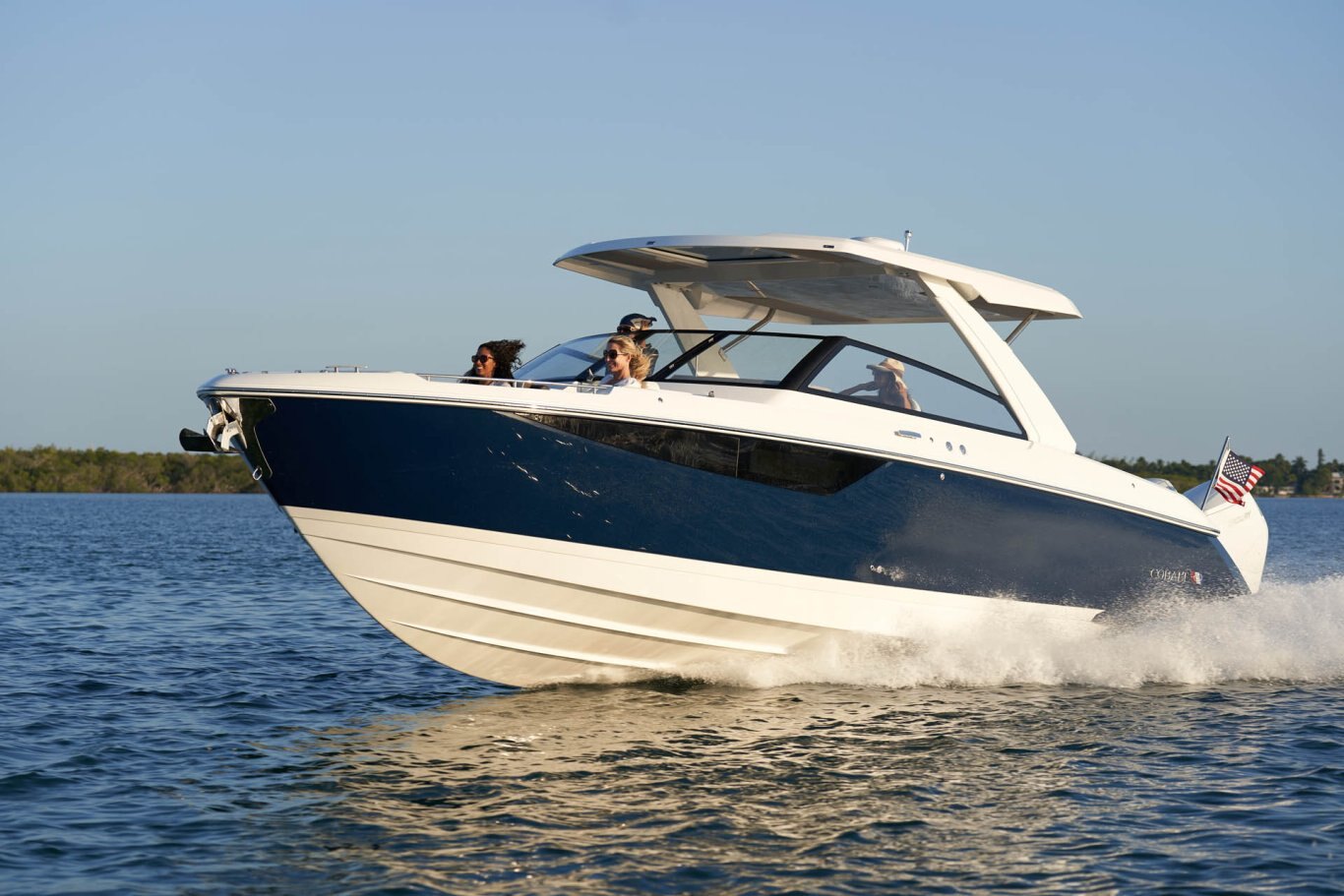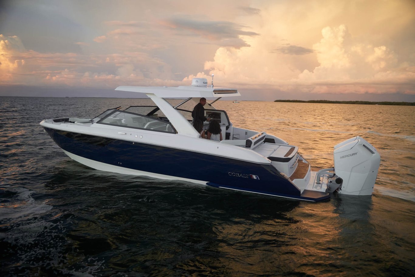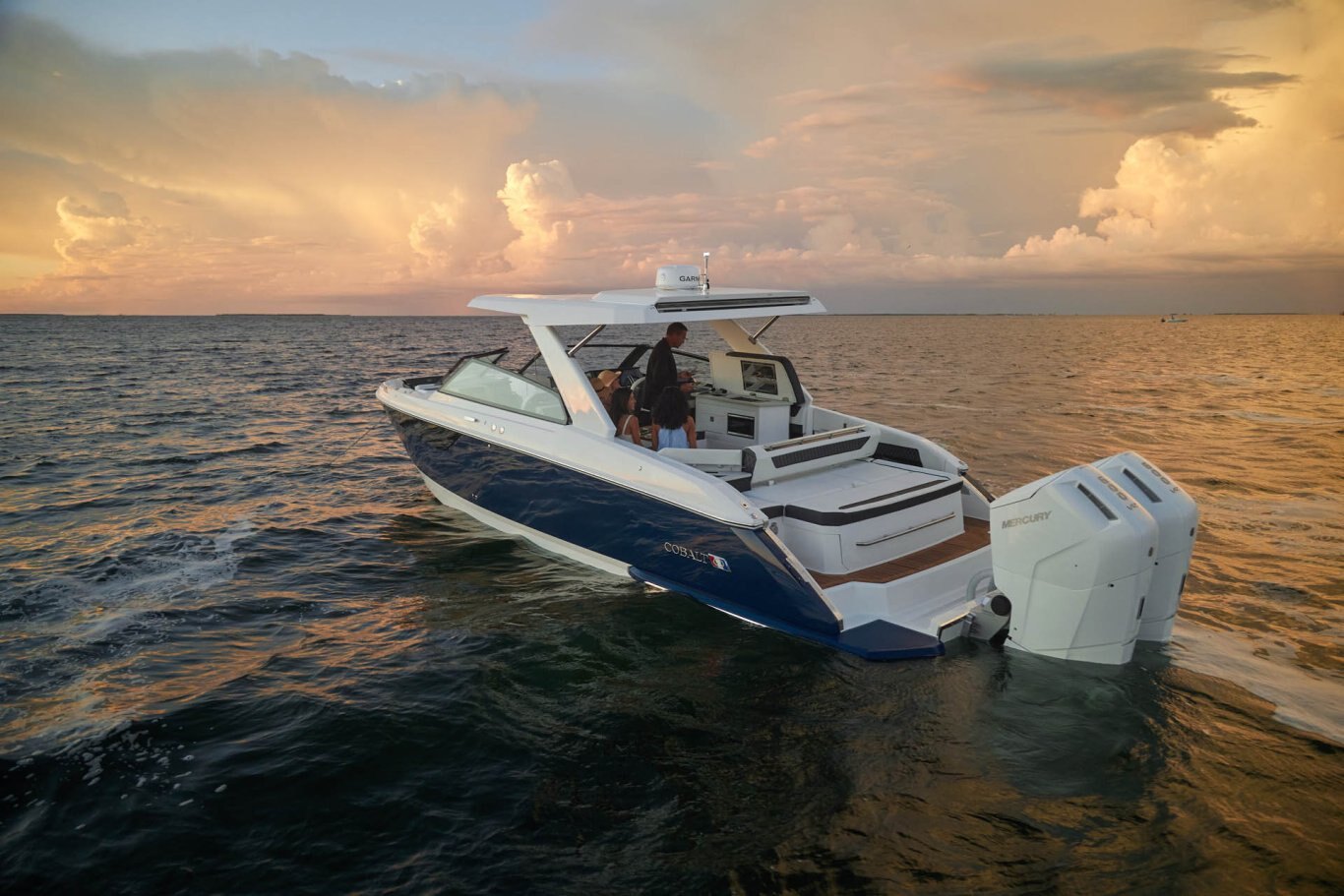 EXTERIORIts 35’ 4” LOA and 10’ 10” beam offers the capacity to accommodate a full complement of family and friends while incorporating the elegant lines, smooth ride, agile handling and thoughtful amenities that come standard with every Cobalt. Powered by your choice of up to three Yamaha or Mercury outboard engines, the impressively fast, yacht-certified R35OB is also equipped with a mix of advanced features that only enhance your boating pleasure. |