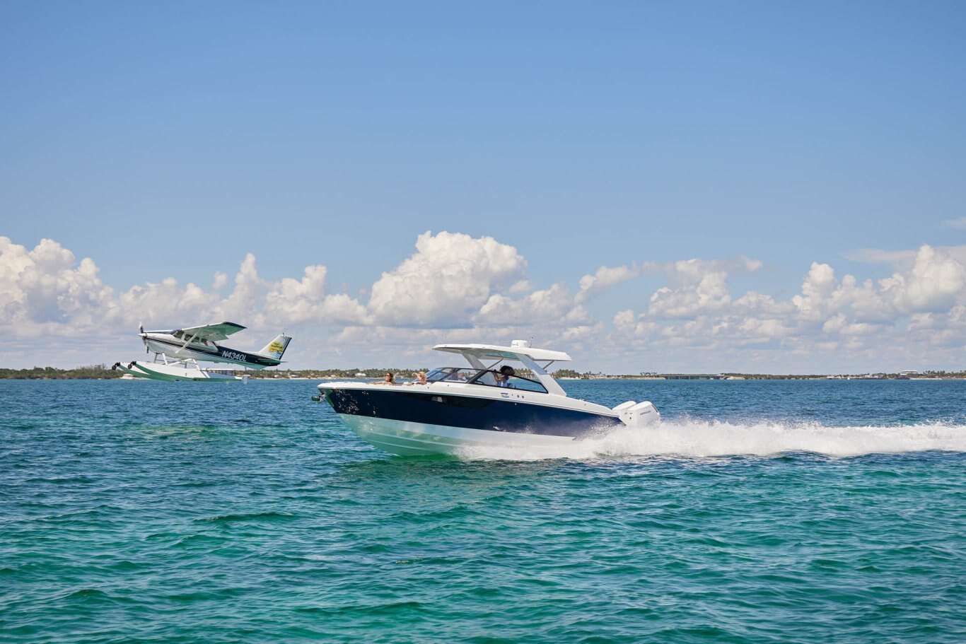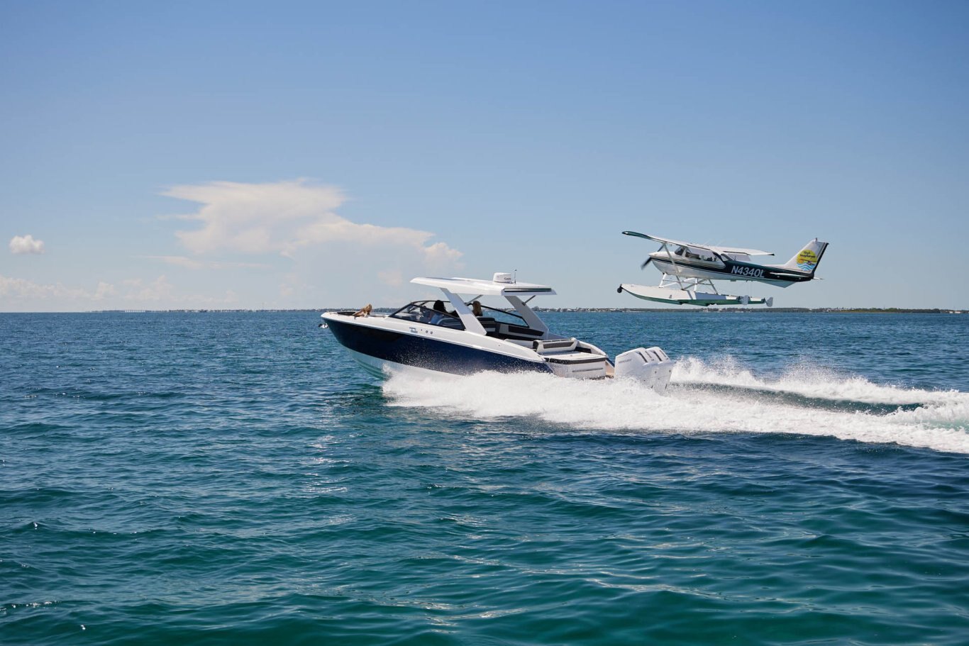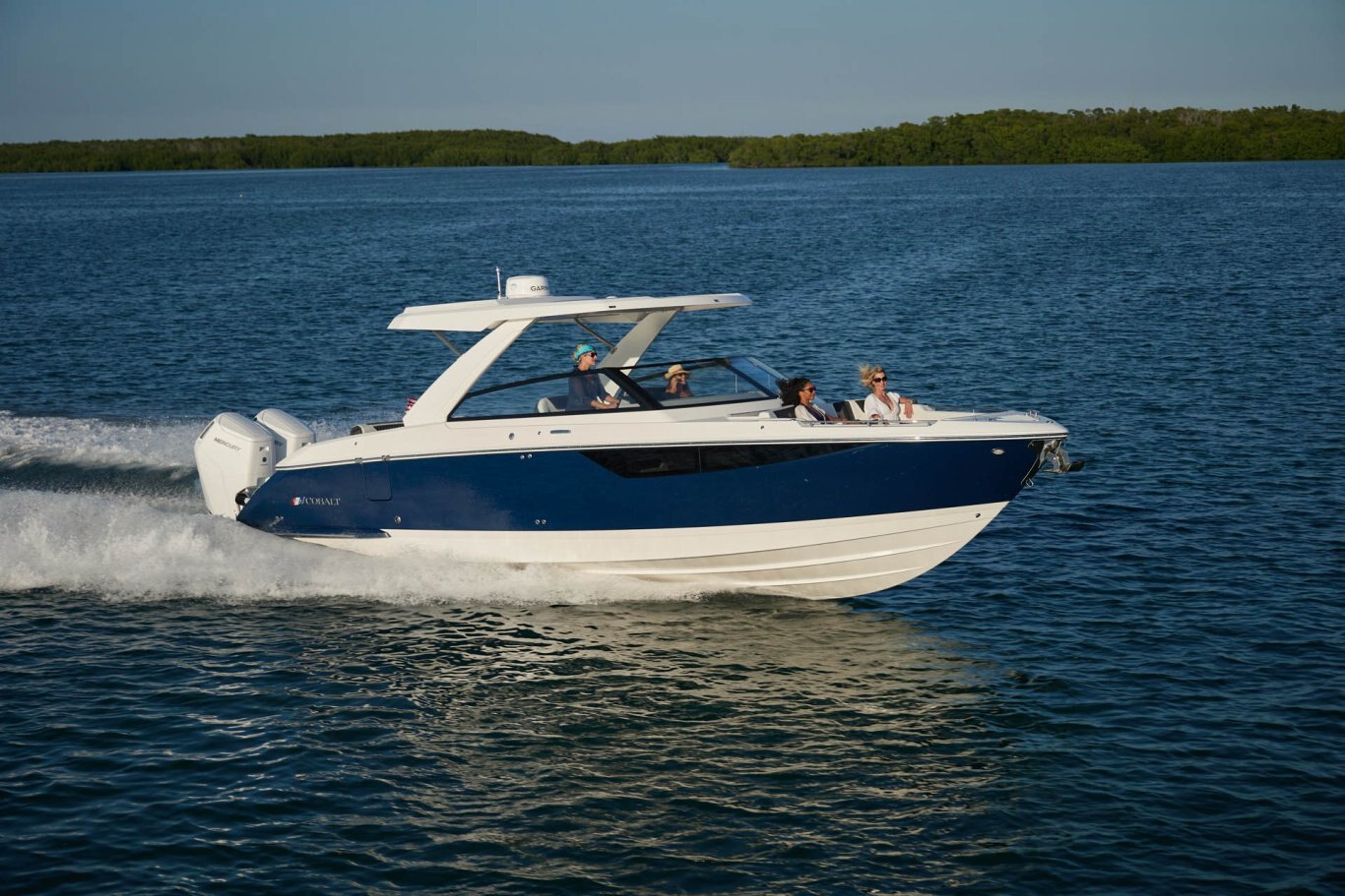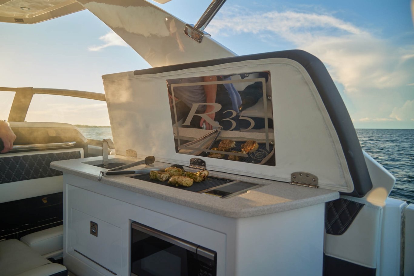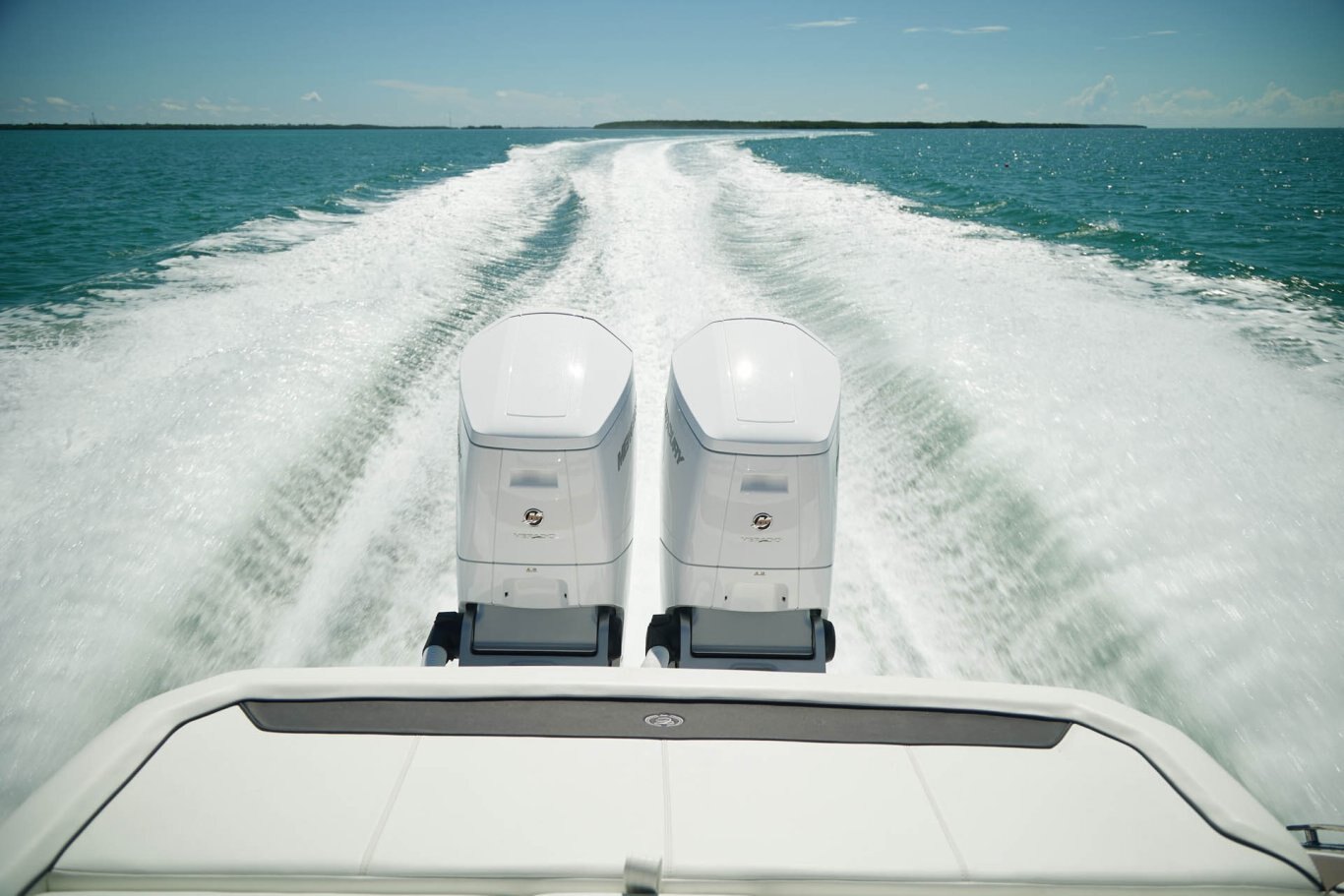EXTERIORIts 35’ 4” LOA and 10’ 10” beam offers the capacity to accommodate a full complement of family and friends while incorporating the elegant lines, smooth ride, agile handling and thoughtful amenities that come standard with every Cobalt. Powered by your choice of up to three Yamaha or Mercury outboard engines, the impressively fast, yacht-certified R35OB is also equipped with a mix of advanced features that only enhance your boating pleasure. |