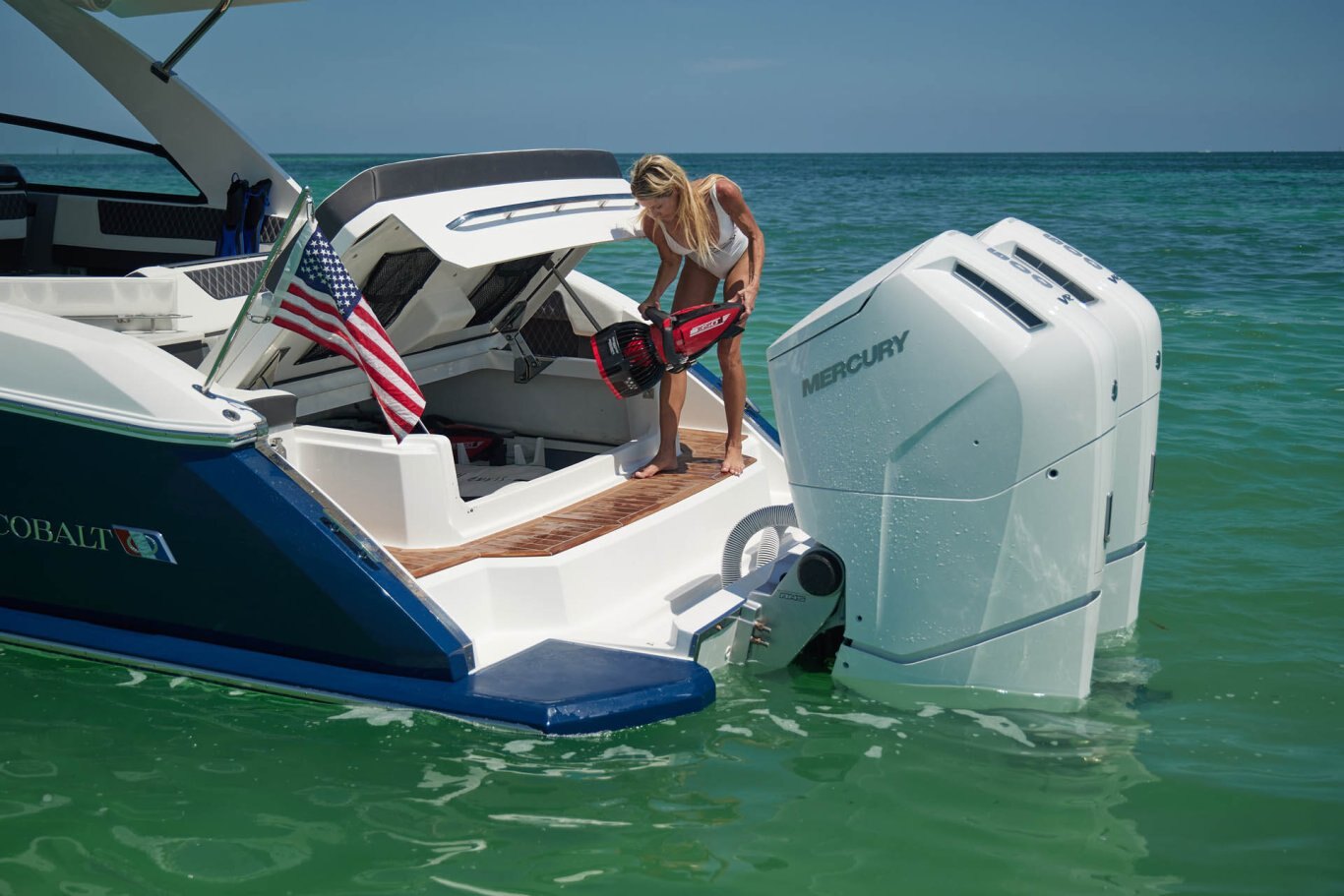 For those who want to explore the beauty below the surface, Cobalt now offers Yamaha’s flagship Seascooter designed for professional and recreational divers, allowing you to spend more time in the water while exerting less energy. The full-featured Seascooter lets you shift between 3 rotational speeds and gets you cruising underwater up to 3.7mph. An automatic buoyancy system, designed for saltwater, allows you to concentrate on the scenery and not on your equipment. |