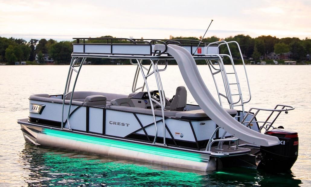 STD Standard 2 Tube Crest’s standard performance package features two large 25” diameter tubes, a 26-gallon fuel tank, and 115 HP. This package also includes four chambers for added strength, durability, flotation, and safety. |