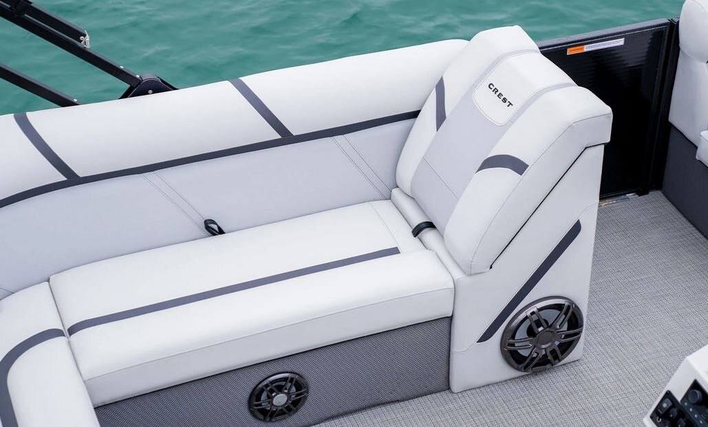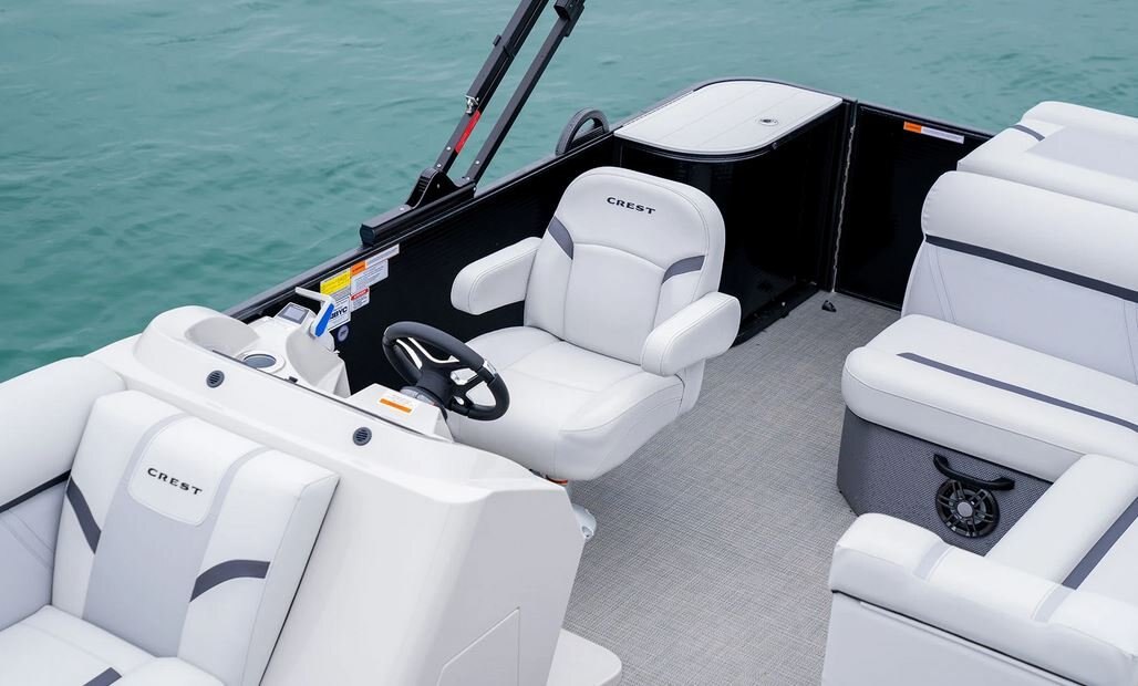 Both comfort and innovation are leveraged to deliver an electric pontoon that is superior to any other on the market. Direct-drive technology gives you efficient and clean power for less hassle and more time cruising quietly through your favorite waterways. The Crest Current comes well equipped with all the signature features, a spacious and comfortable captain’s chair, a roll-out bimini top, USB ports, and wireless phone chargers. You’ll find the same quality styling in the fencing and interior options to match. Also included is LED lighting all around so you can dock and take off safely and in style. With superior comfort and the highest quality construction, this electric pontoon boat delivers thoughtful and functional features only Crest can provide.