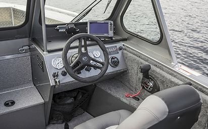 Check out 18 feet of open-water dominance. This all-welded aluminum fishing boat is built with the kind of features anglers look for. With an aluminum console, ample rod and livewell storage and a heavy duty windshield, you're all set to command the open water.