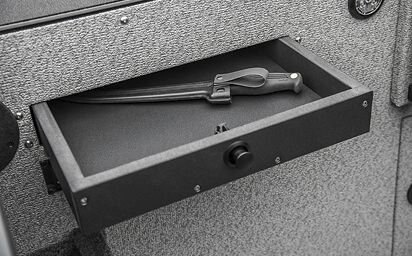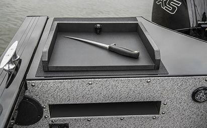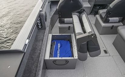 Replace pedestals with storage boxes below the helm and passenger seats for additional storage space.