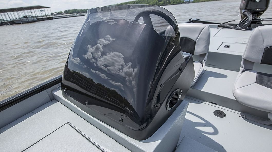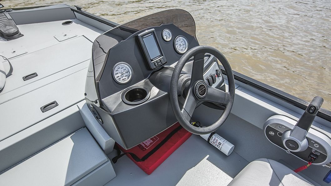 Console/InstrumentationConsole, starboard, switch panel, 12V power outlet, drink holder & Humminbird PiranhaMAX 4 fish finder (max flush mount space 10”W x 6”H) |
