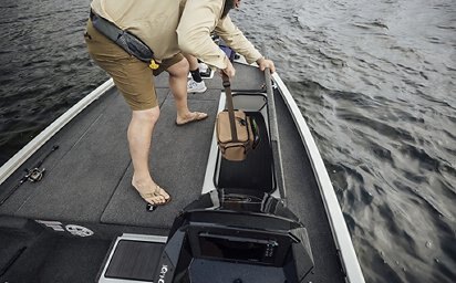 Up your game with the optional Pro Package. Includes upgraded black sport steering wheel, windscreen, automatic bilge pump, recirculating livewell pump (stern), insulated livewell and storage compartment lids (stern), chrome compression latches, LED interior lights for bow and stern decks, stern livewell and rod locker, ratchet straps and upgraded premium mag wheel trailer.