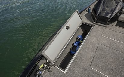Up your game with the optional Pro Package. Includes upgraded black sport steering wheel, windscreen, automatic bilge pump, recirculating livewell pump (stern), insulated livewell and storage compartment lids (stern), chrome compression latches, LED interior lights for bow and stern decks, stern livewell and rod locker, ratchet straps and upgraded premium mag wheel trailer.