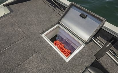 Up your game with the optional Pro Package. Includes upgraded black sport steering wheel, windscreen, automatic bilge pump, recirculating livewell pump (stern), insulated livewell and storage compartment lids (stern), chrome compression latches, LED interior lights for bow and stern decks, stern livewell and rod locker, ratchet straps and upgraded premium mag wheel trailer.