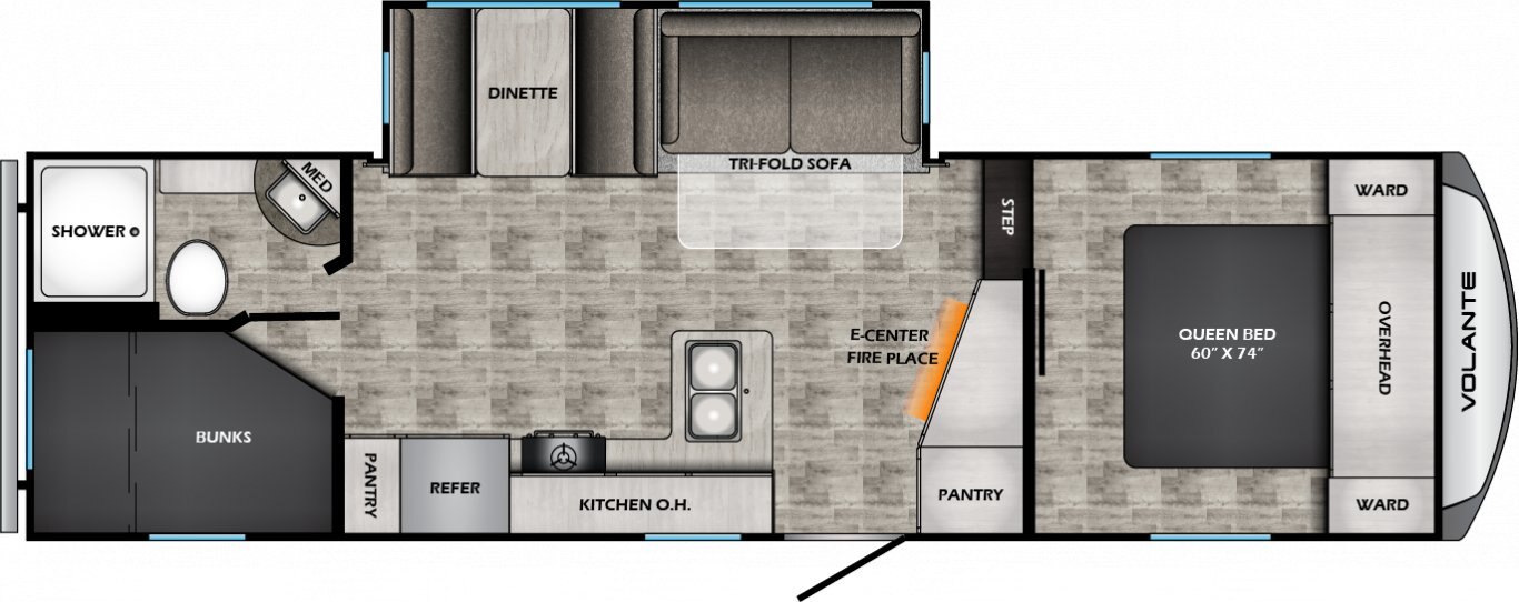 The Volante line was designed simply to enhance your camping experience. Constructed of high quality material in a package that is surprisingly affordable, anyone can experience what the Volante has to offer. A painted front cap, stainless steel appliances, and residential wood blinds are just some of the stunning features that the Volante provides. You already love camping, get ready for that love to turn into an obsession.