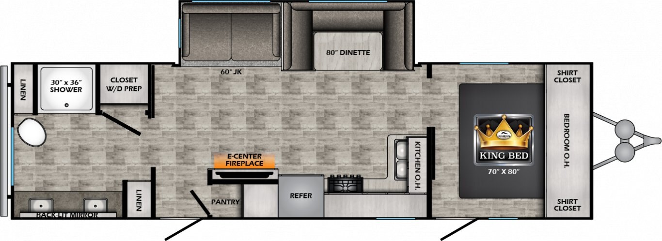 The Volante line was designed simply to enhance your camping experience. Constructed of high quality material in a package that is surprisingly affordable, anyone can experience what the Volante has to offer. A painted front cap, stainless steel appliances, and residential wood blinds are just some of the stunning features that the Volante provides. You already love camping, get ready for that love to turn into an obsession.