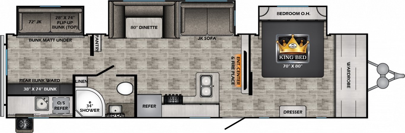 The Volante line was designed simply to enhance your camping experience. Constructed of high quality material in a package that is surprisingly affordable, anyone can experience what the Volante has to offer. A painted front cap, stainless steel appliances, and residential wood blinds are just some of the stunning features that the Volante provides. You already love camping, get ready for that love to turn into an obsession.
