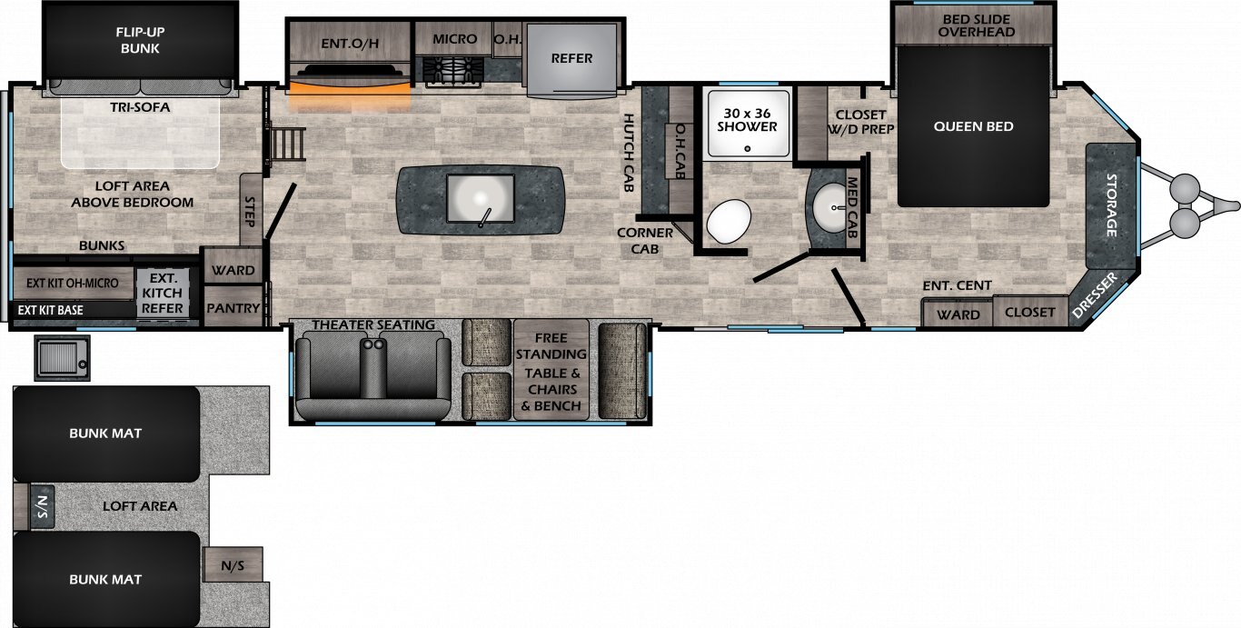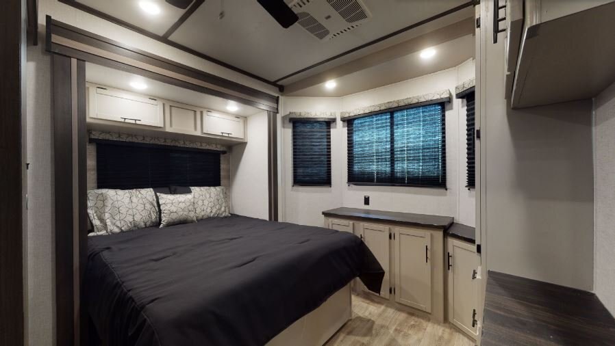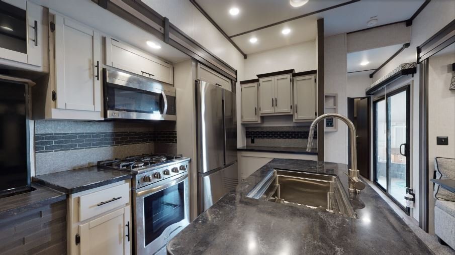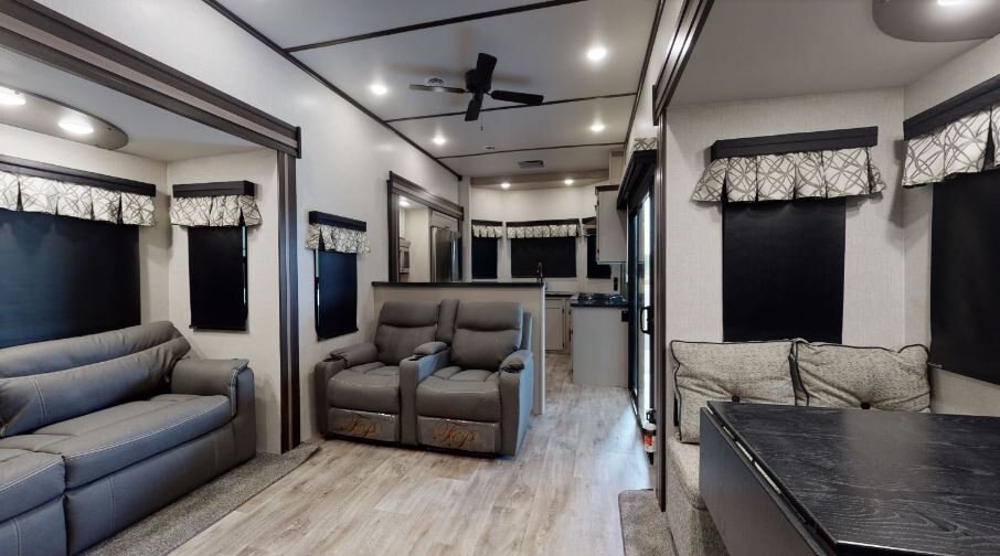 Looking for an extended stay trailer, but don't want to sacrifice your creature comforts?  Look no further than the Hampton by Crossroads. Hampton has been designed and engineered to feel like home.  Rich stainless steel residential style appliances, 8- foot ceilings, hardwood raised panel cabinetry, and abundant storage await you in a Hampton.Wherever your adventure takes you the Hampton will allow you to make your home where you want it to be.
