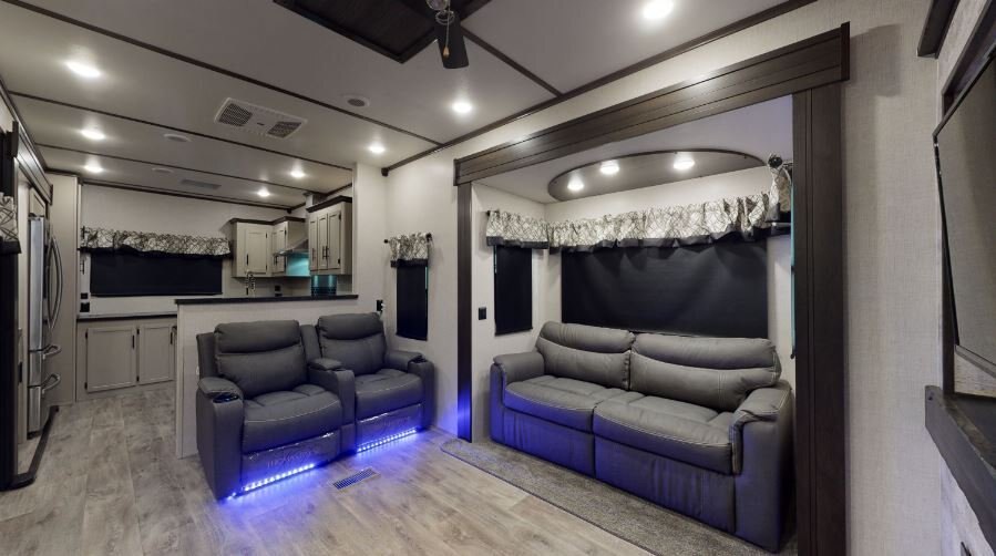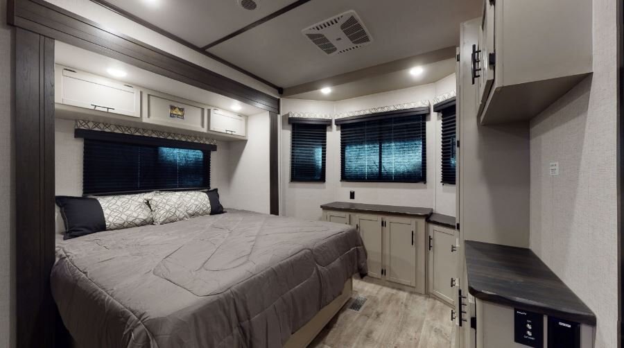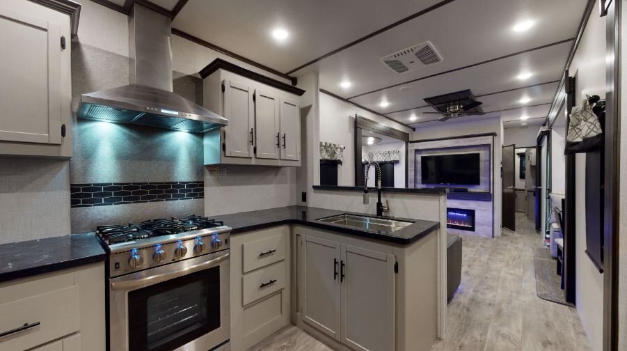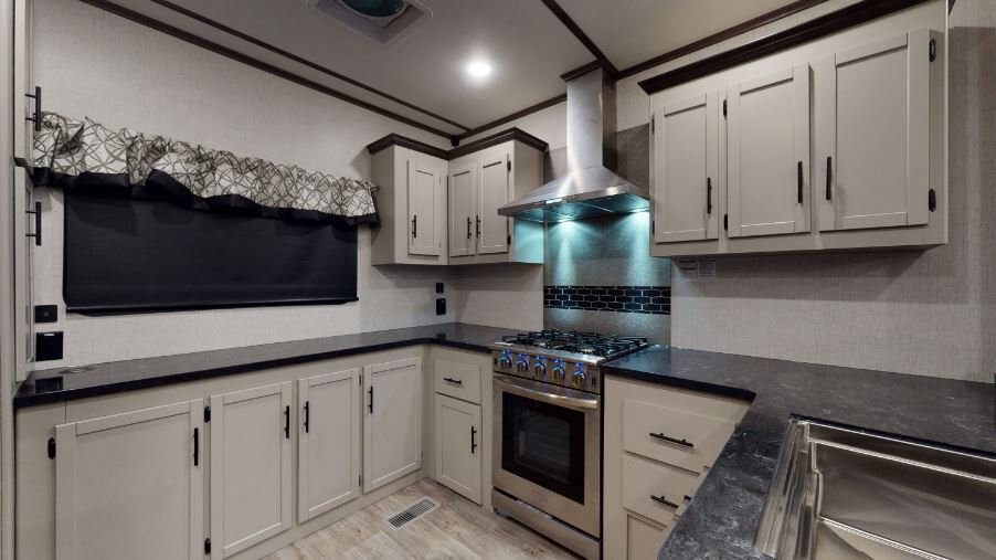 Looking for an extended stay trailer, but don't want to sacrifice your creature comforts?  Look no further than the Hampton by Crossroads. Hampton has been designed and engineered to feel like home.  Rich stainless steel residential style appliances, 8- foot ceilings, hardwood raised panel cabinetry, and abundant storage await you in a Hampton.Wherever your adventure takes you the Hampton will allow you to make your home where you want it to be.