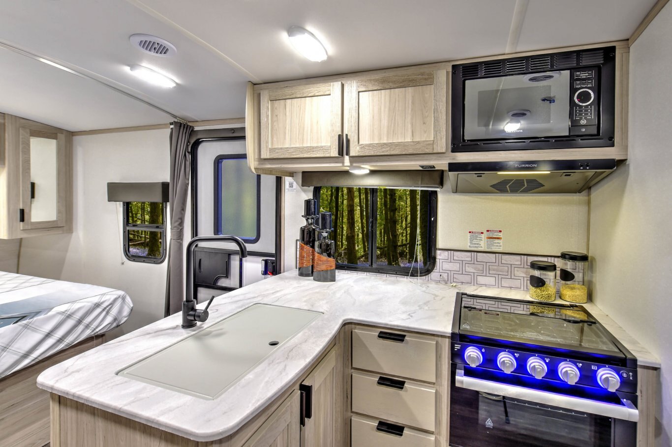 For everyone who’s ever wanted to see America, but thought you couldn’t afford a serious travel trailer, the Shadow Cruiser is for you. It’s the most affordable trailer in our lineup, but that doesn’t mean it’s short on quality or comfort. Feature for feature, dollar for dollar, this budget-friendly beauty leaves all competitors in its shadow. It’s lightweight, easy to tow, surprisingly well appointed, and even boasts a thoughtfully enclosed and heated underbelly to keep you toasty in cooler weather. This family favorite comes in versatile floor plans — from cozy couples coaches to bunkhouse models that sleep up to 10 spirited adventurers.