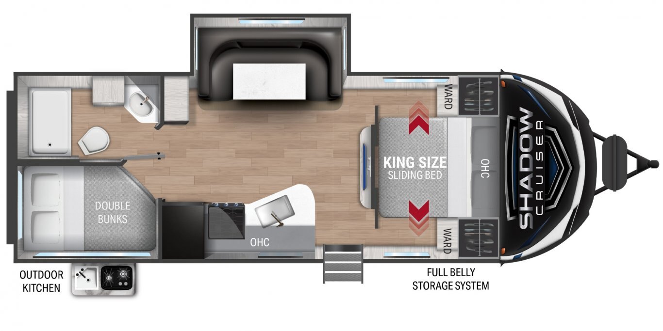 For everyone who’s ever wanted to see America, but thought you couldn’t afford a serious travel trailer, the Shadow Cruiser is for you. It’s the most affordable trailer in our lineup, but that doesn’t mean it’s short on quality or comfort. Feature for feature, dollar for dollar, this budget-friendly beauty leaves all competitors in its shadow. It’s lightweight, easy to tow, surprisingly well appointed, and even boasts a thoughtfully enclosed and heated underbelly to keep you toasty in cooler weather. This family favorite comes in versatile floor plans — from cozy couples coaches to bunkhouse models that sleep up to 10 spirited adventurers.