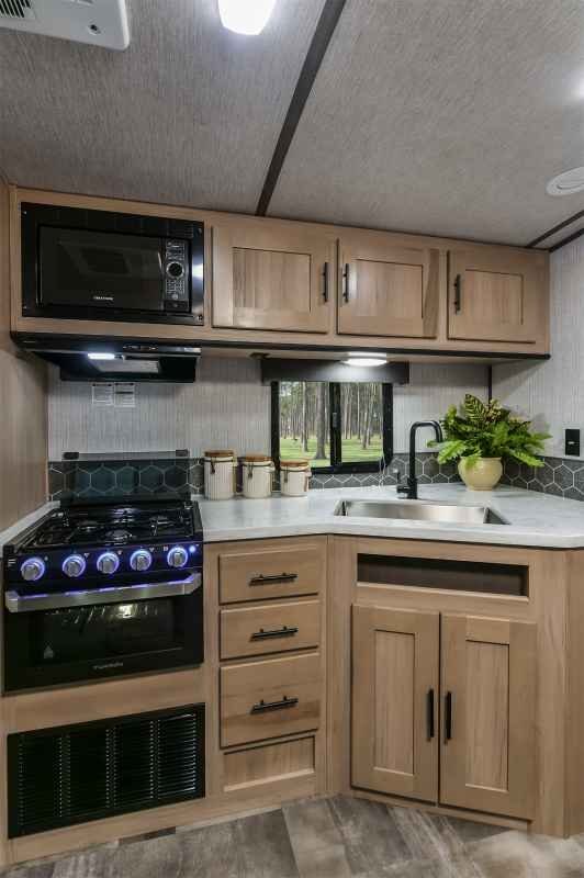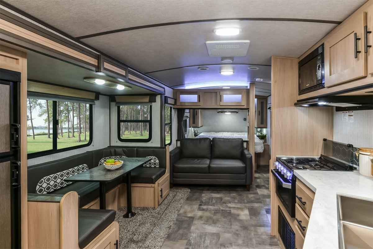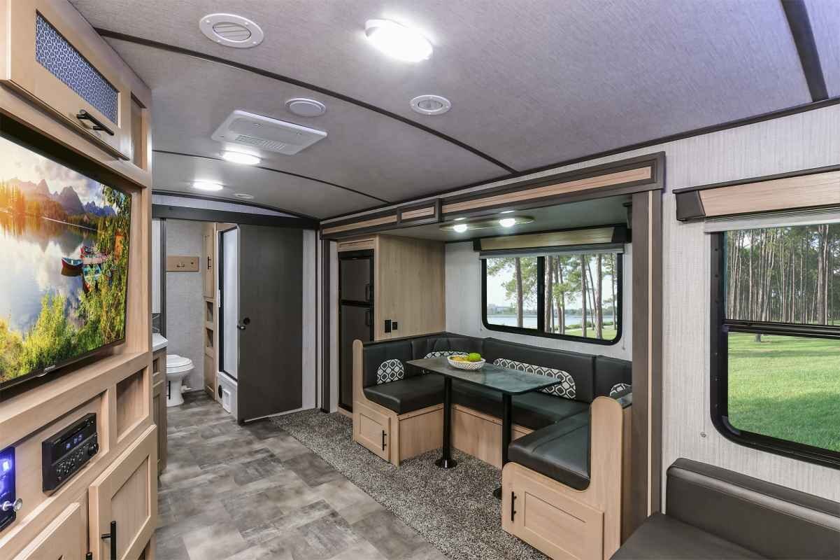 If your idea of roughing it involves king-size beds, cushy sofas and a fully decked out kitchen, Cruiser RV has the trailer for you. The Radiance blends the luxury your crazy heart desires with the affordability your practical side demands. Available in 13 diverse floorplans — from two-person coaches to double-slide bunkhouse models — this stunner outshines everything in its class.