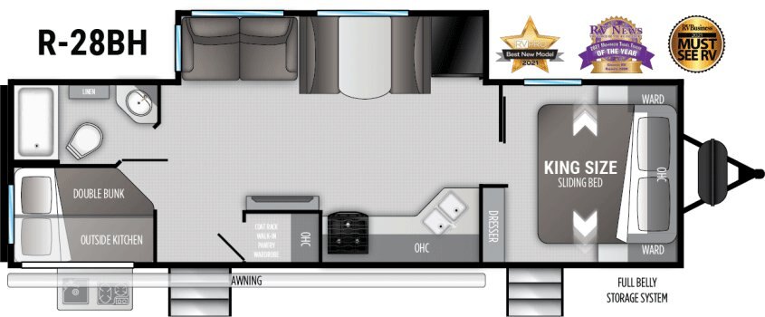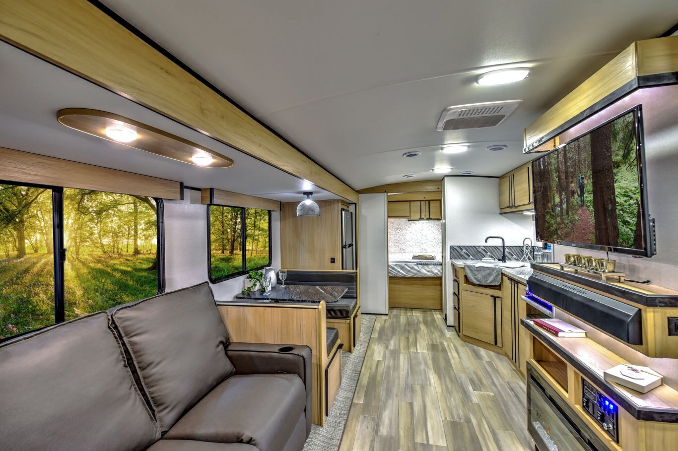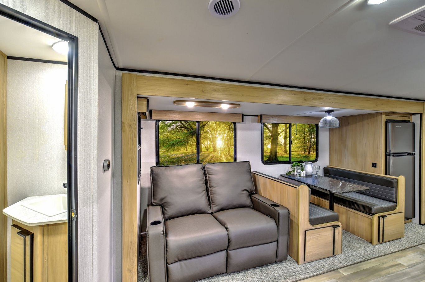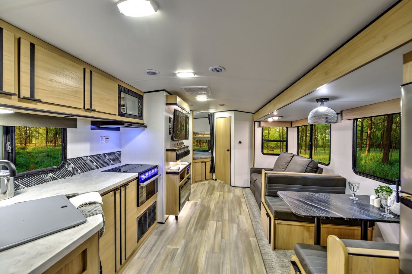 If your idea of roughing it involves king-size beds, cushy sofas and a fully decked out kitchen, Cruiser RV has the trailer for you. The Radiance blends the luxury your crazy heart desires with the affordability your practical side demands. Available in 13 diverse floorplans — from two-person coaches to double-slide bunkhouse models — this stunner outshines everything in its class.