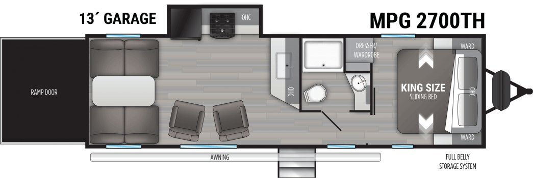 We know the feeling. You want to get out there and explore this great country, but you don’t want to leave a big environmental footprint behind. The MPG was engineered with you (and the planet) in mind. Like all Cruiser RV products, it’s lightweight yet built to last. And it tows easily behind your fuel-efficient, half-ton vehicle. Mile for mile, it’s packed with value, too. The MPG features comfy homelike furnishings, king beds, taller ceilings, outside kitchens and 12 great floor plans with either single or double slides and sleeping options aplenty. If you want a trailer that’s built for value and fuel efficiency, the name says it all.