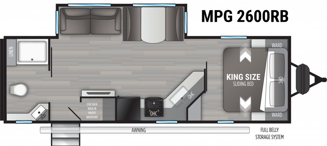 We know the feeling. You want to get out there and explore this great country, but you don’t want to leave a big environmental footprint behind. The MPG was engineered with you (and the planet) in mind. Like all Cruiser RV products, it’s lightweight yet built to last. And it tows easily behind your fuel-efficient, half-ton vehicle. Mile for mile, it’s packed with value, too. The MPG features comfy homelike furnishings, king beds, taller ceilings, outside kitchens and 12 great floor plans with either single or double slides and sleeping options aplenty. If you want a trailer that’s built for value and fuel efficiency, the name says it all.