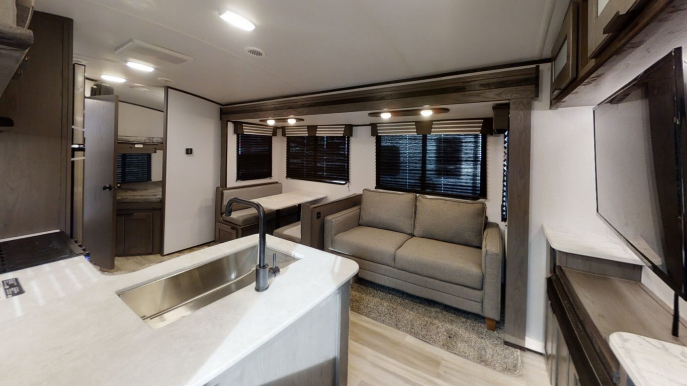 We know the feeling. You want to get out there and explore this great country, but you don’t want to leave a big environmental footprint behind. The MPG was engineered with you (and the planet) in mind. Like all Cruiser RV products, it’s lightweight yet built to last. And it tows easily behind your fuel-efficient, half-ton vehicle. Mile for mile, it’s packed with value, too. The MPG features comfy homelike furnishings, king beds, taller ceilings, outside kitchens and 12 great floor plans with either single or double slides and sleeping options aplenty. If you want a trailer that’s built for value and fuel efficiency, the name says it all.