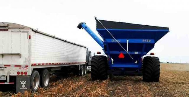 Capacity- 1100+ Bushels Balanced Auger Size- 18” Unloading Time- 3 ½ minutes Spindle Size- 5 ½” Tractor HP Required- 175+ Hub Size- 10 Bolt – 13.19” Tread Width (Standard)- 147” Tread Width (Optional)- NA Tongue Frame- 4”x10” Tongue Weight- (Empty)- 1160lbs Tongue Weight- (loaded)-NA Roll Top Tarp- Optional Scale- Optional Weight/Wheels & Tires- 14000 lbs Physical Size/Auger Extends to Side- 9’5”” Physical Size/Box Width (Transport Width)- 14’ 5” Physical Size/Height, Low Side- 11’ 5” Physical Size/Axle Ground Clearance- 16 ½ “ Physical Size/Auger Extend to Front- 7’6” Physical Size/Box Length- 20’1” Physical Size/Box Height (High Side)- 12’ 9” Physical Size/Total Length- 25’ 11” Physical Size/Axle to Tongue Length- 15 3” Physical Size/Drawbar/Tongue Height- 18” Physical Size/Auger Clearance Height- 14’ 9”
