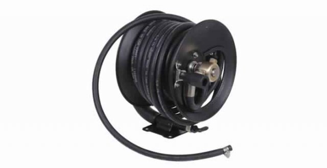 Electric motor, diaphragm pump with Viton® valves will deliver 5 GPM. Draws 9 amps at 20 PSI.
