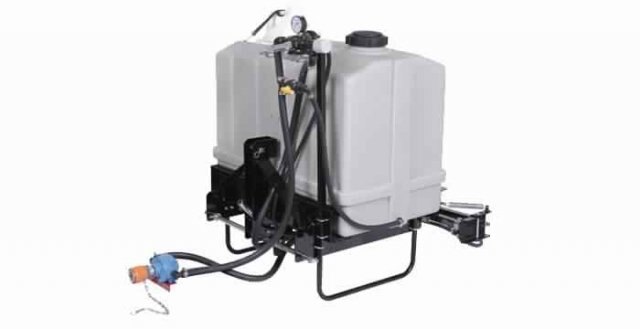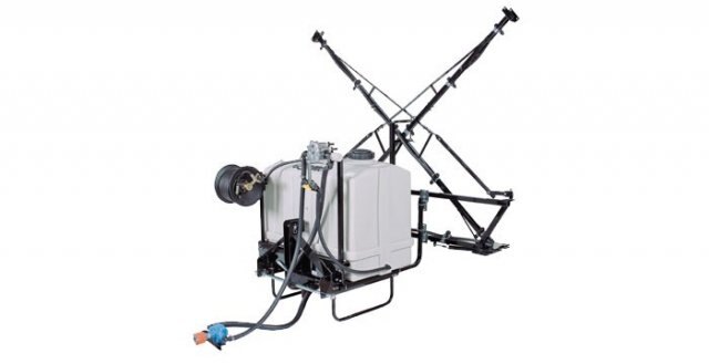80” spray boom with 2 nozzles (AN1.5), 12’ spray boom with 4 nozzles and spring loaded boom break away or 18’ boom with 6 nozzles.