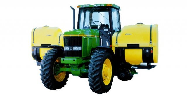 The undercarriage is bolted to the tractor and can remainon the tractor while the tanks can be removed quickly and easily.
