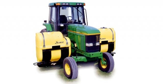 Demco “Quick Tach” brackets come with saddles, tank bands, carrier brackets and all necessary bolts for complete installation. The undercarriage is bolted to the tractor and can remain on the tractor while the tanks can be removed quickly and easily. The heavy duty brackets allow you to carry a total of 400 or 500 gallons.