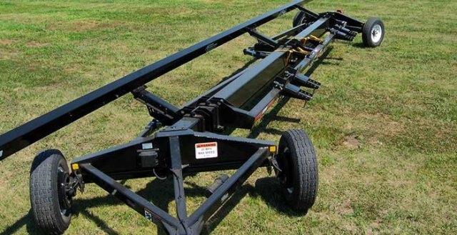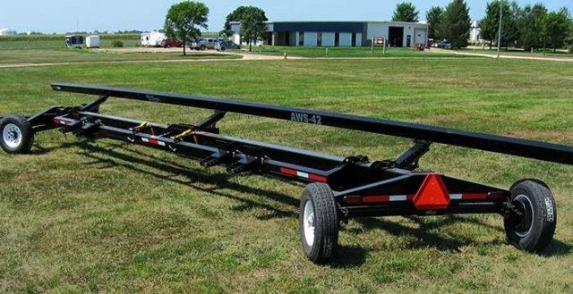 The All Wheel Steer (AWS) is the newest addition to the Maurer head transport lineup. The AWS models carry on our tradition of providing high quality head transports to safely move your combine head and protect the investment you have made in your combine head. The AWS models from Maurer offer a short turning radius, unmatched clearance, an adjustable upper support tube, and front & rear torsion.