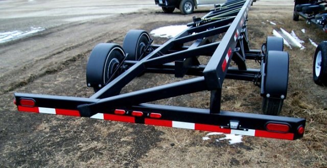The AWS also has front and rear torsion axles and LED lighting to provide you with safety and to protect the investment you have in your combine head. The Demco AWS also has ground clearance that is unmatched in the industry by having our steering linkages located to the side of the main beam. |