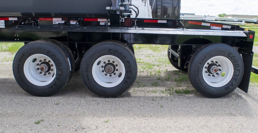 23K Axles with Wabco ABS brakes (single axle) and 10 bolt hub piloted steel rims, 80,000 lbs. GVW