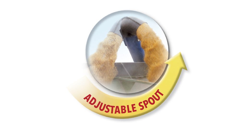 • Forward reach auger adjusts vertically from 11’8” to 15’7” to help prevent grain spilling