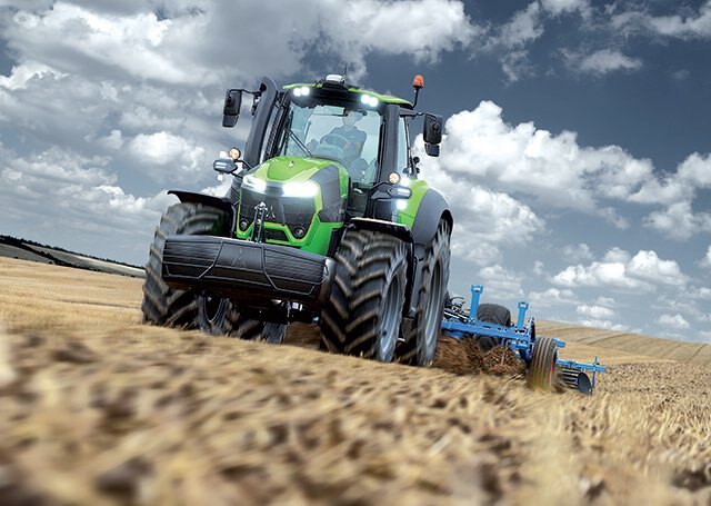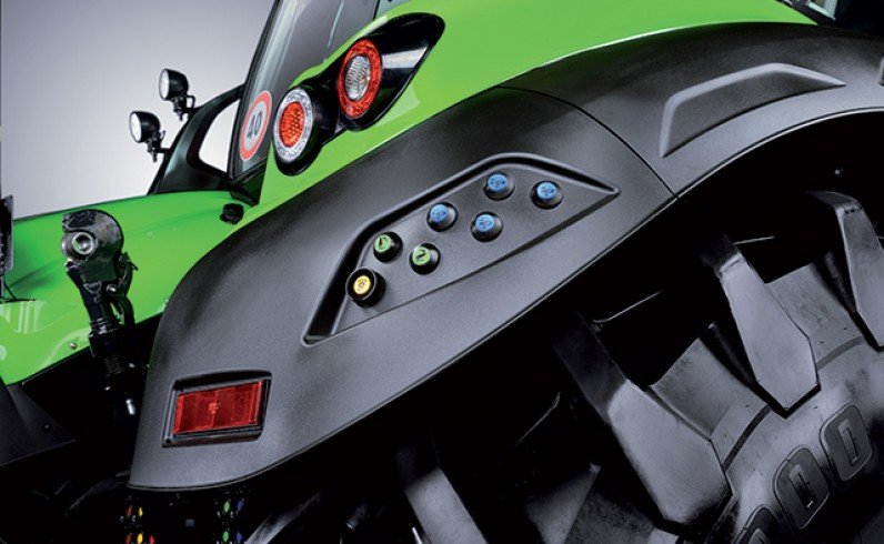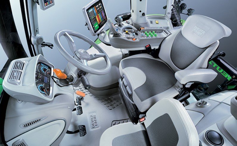 Superior security. All 9 Series tractors are equipped with the DEUTZ FAHR Power Brake System – for more stopping power with less pedal pressure. The 60 km/h tractors feature large external dry front brakes. 50% of the braking force is on the front axle, and the four-wheel drive activation is automatically enabled for extra braking force. The EPB (Electric Parking Brake) is also standard. It is automatically disabled when the direction of travel is selected and reactivated shortly after the driver has left the tractor. |