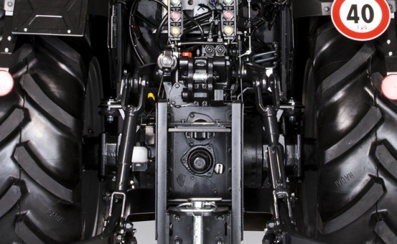 The new DEUTZ-FAHR front axle concept is unique for specialist tractors, making it a real highlight. Independent wheel suspension with a double wishbone design allows each front wheel to move vertically to a different extent. This results in maximum suspension in all operating scenarios. The spring stroke of each wheel is controlled by an adaptive electro-hydraulic system, ensuring that the wheel contact patch always touches the ground fully. The differential traction control (DTC) system constantly monitors wheel revolutions and always applies torque to the wheel during maximum ground contact. Furthermore, this innovate control system in DEUTZ-FAHR specialist tractors also features a roll and directional stabilisation function. Roll stabilisation prevents undesirable diving of the front axle and subsequent shifts in load when braking, while directional stability stops the vehicle from rocking when it corners or turns. The slim geometry of the front axle frame allows a steering lock angle of up to 60°. The turning radius has been reduced by 10% to three metres on average. A hydraulic four-wheel brake comes as standard, an automatic electro-hydraulic engagement of the four-wheel drive and 100% differential lock is optionally available. All of this means that the innovate front axle concept guarantees maximum wheel grip, traction, stability and safety for all ground conditions – both on and off the road. |